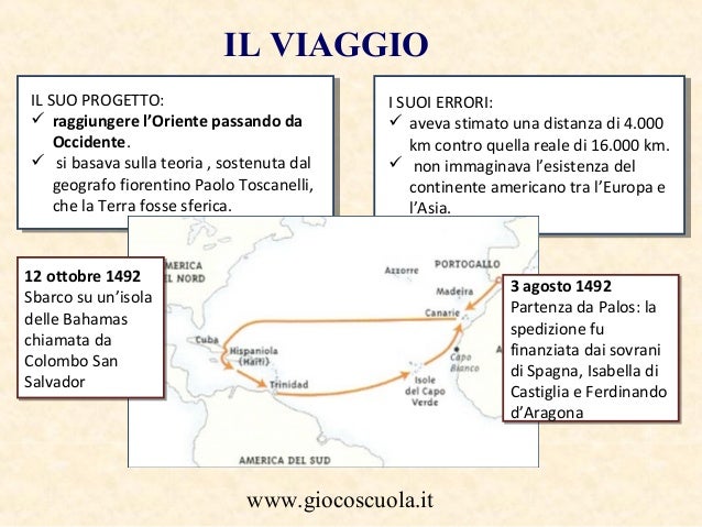 16 settembre 2013 in Geo-Storia smart Geografia primaria Storia Storia Primaria Tagbiografia cristoforo colombo geografia il viaggio di cristoforo colombo scuola primaria storia. Cristoforo colombo e la scoperta dellamerica cristoforo colombo nacque a genova nel 1451. Dopo aver navigato per circa 33 giorni e dopo aver sostato un mese allisola di La Gomera per riparazioni alle imbarcazioni e convinto di fare rotta verso le Indie il 12 ottobre 1492 Cristoforo Colombo approdò in un nuovo continente che più tardi prese il nome di America in onore di Amerigo Vespucci.